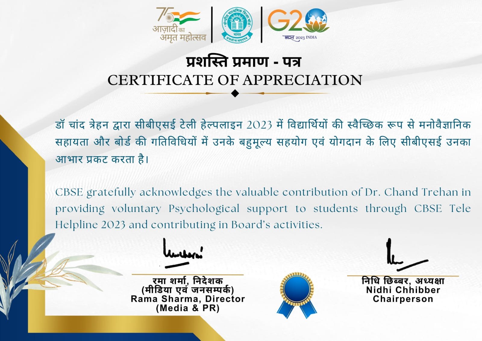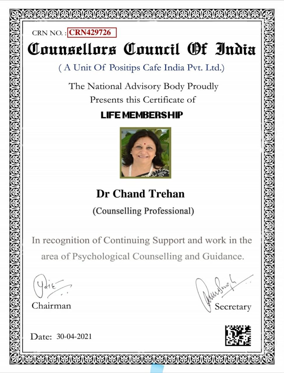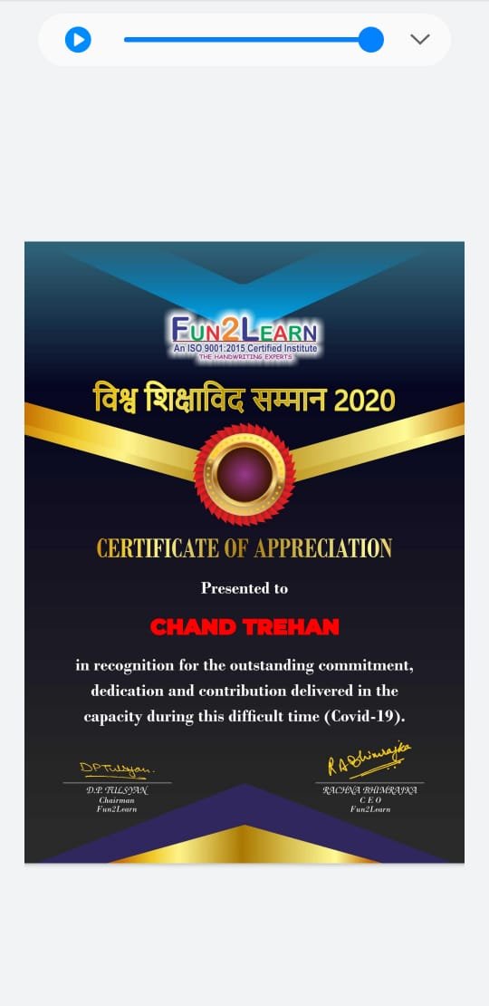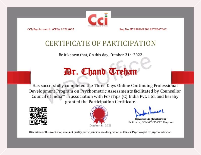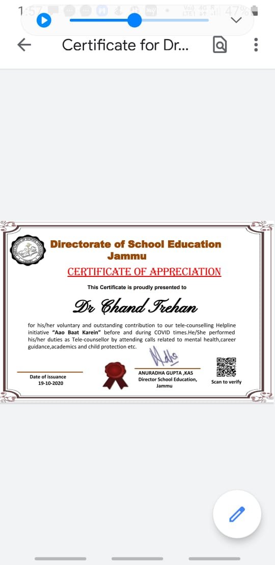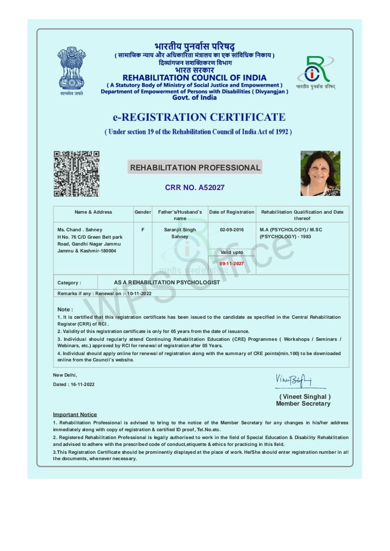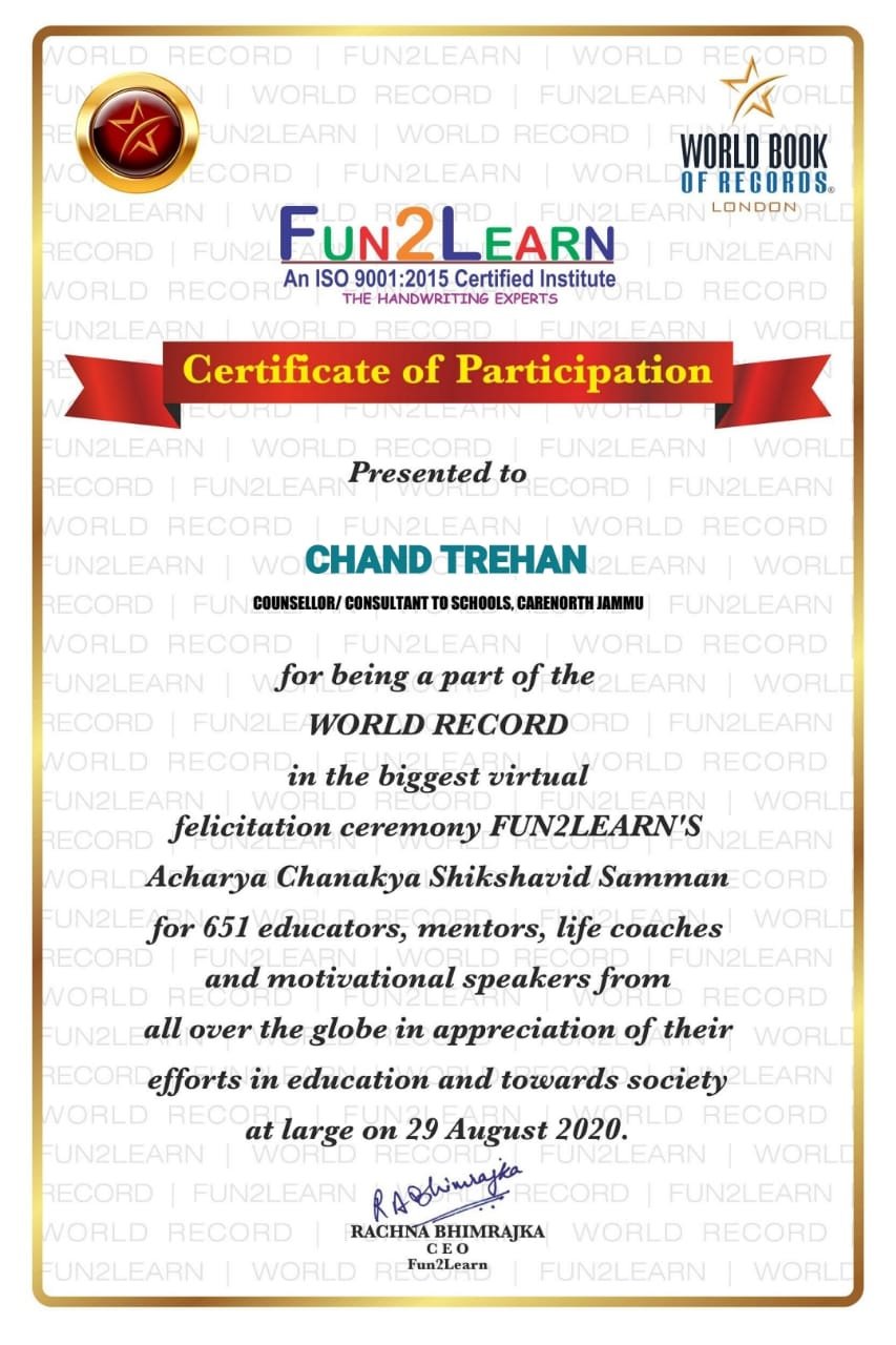 Dr. Chand Trehan M.A,B.Ed,PhD(Psychology)